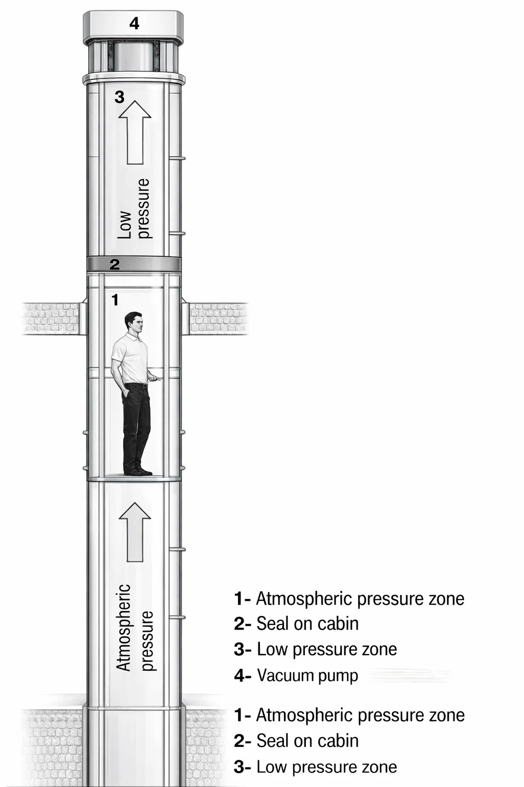 Vacuum system is also sometimes referred to as pneumatic elevator. This system is self-supporting residential lifts that use air pressure differential to move a car up or down within a vertical cylinder.